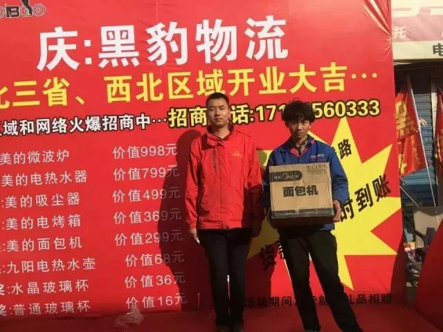 河南黑豹物流成立于2005年,在河南省十五年內(nèi)達(dá)到自有場(chǎng)地500余畝,倉(cāng)儲(chǔ)物流,集倉(cāng)儲(chǔ)、配送一體化服務(wù),現(xiàn)有車隊(duì)數(shù)百余輛,員工上千人,公司現(xiàn)有精英管理團(tuán)隊(duì),達(dá)到精品線路數(shù)百余條,覆蓋全國(guó)十八個(gè)省會(huì)。黑豹物流主要營(yíng)零擔(dān),整車,倉(cāng)儲(chǔ),配送業(yè)務(wù),900公里次日到達(dá),代收貨款8小時(shí)到帳,黑豹現(xiàn)推出,省內(nèi)所有線路免費(fèi)送貨,為回饋新老客戶,發(fā)貨就有禮品贈(zèng)送,特等獎(jiǎng):美的微波爐,價(jià)值998元。一等獎(jiǎng):美的電熱水器,價(jià)值799元。二等獎(jiǎng):美的吸塵器,價(jià)值499元。三等獎(jiǎng):美的電烤爐,價(jià)值369元。四等獎(jiǎng):美的面包機(jī),價(jià)值299元。五等獎(jiǎng):九陽(yáng)電熱水壺,價(jià)值68元。六等獎(jiǎng):水晶玻璃杯,價(jià)值36元。紀(jì)念獎(jiǎng):普通玻璃杯,價(jià)值16元。感謝新老客戶多年以來(lái)對(duì)黑豹物流的支持與關(guān)愛。公司新開通東北三省,西北五省專線直達(dá)線路,3月6號(hào)正式運(yùn)營(yíng),感謝大家鼎力支持!