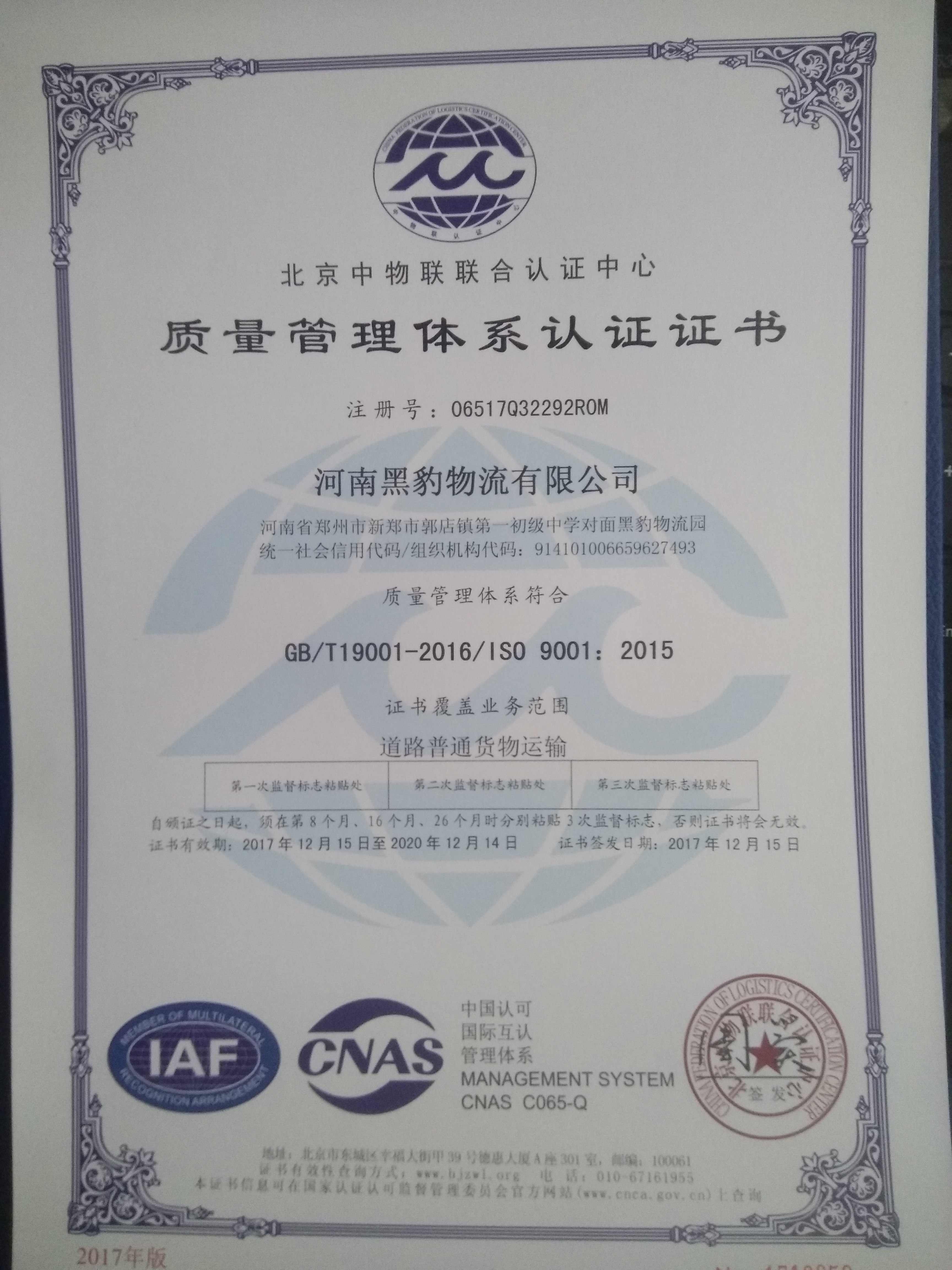 在公司員工的不懈努力下,經(jīng)過(guò)中物聯(lián)評(píng)估專家的全面、嚴(yán)格、細(xì)致的指導(dǎo)和審核,確認(rèn)我司質(zhì)量管理體系符合ISO9001:2015質(zhì)量體系標(biāo)準(zhǔn)的要求,于2017年12月15日向我司正式頒發(fā)了ISO9001質(zhì)量管理體系認(rèn)證證書。