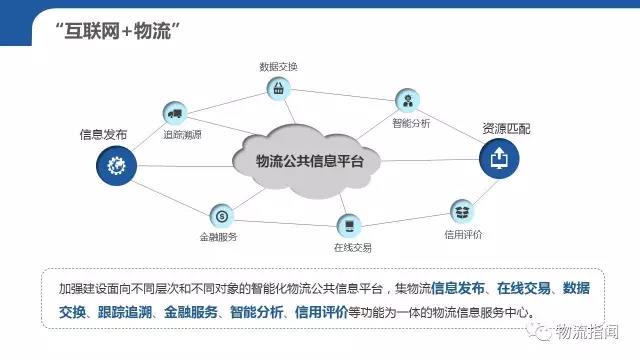 通過加強建設面向不同層次和不同對象的智能化物流公共信息平臺,可以有效的形成集物流信息發布、在線交易、數據交換、跟蹤追溯、金融服務、智能分析、信用評價等功能為一體的物流信息服務中心。